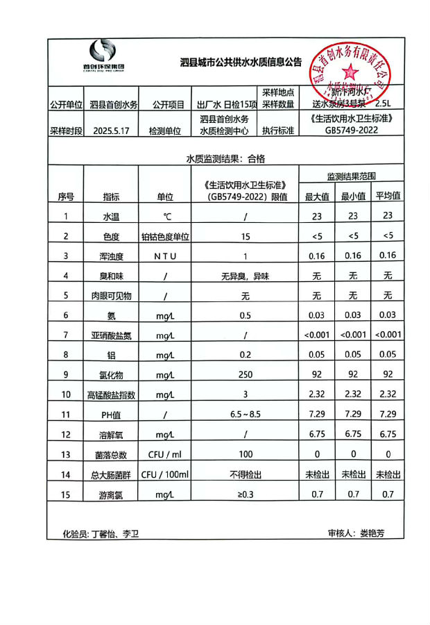 2025年5月17日出厂水水质