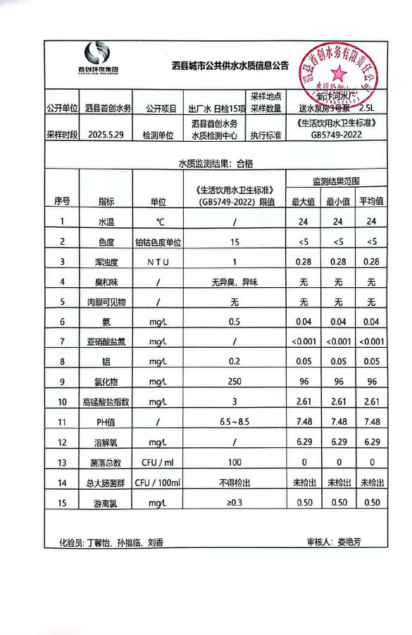 2025年5月29日出厂水水质
