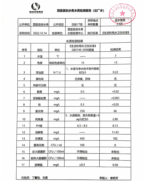2022年12月14日出厂水水质
