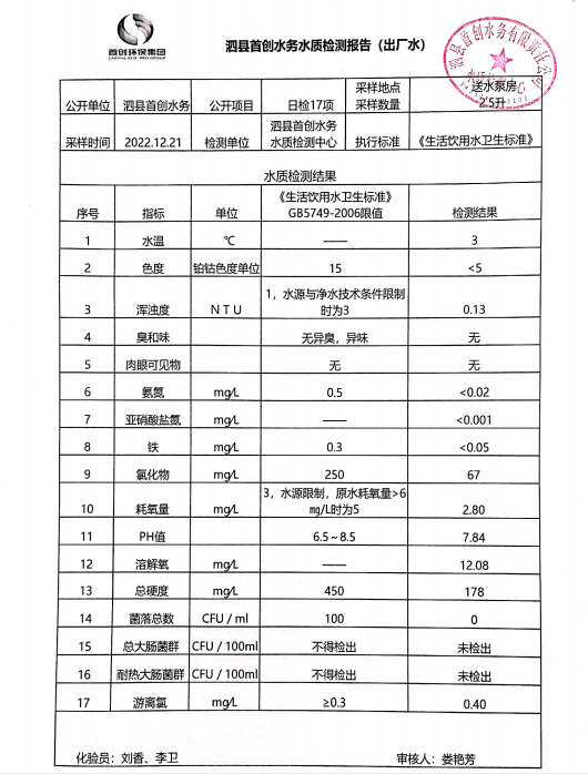 2022年12月21日出厂水水质
