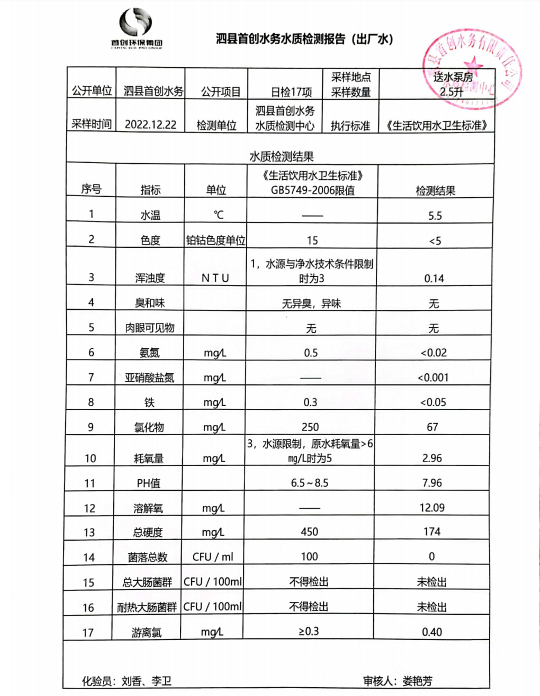2022年12月22日出厂水水质