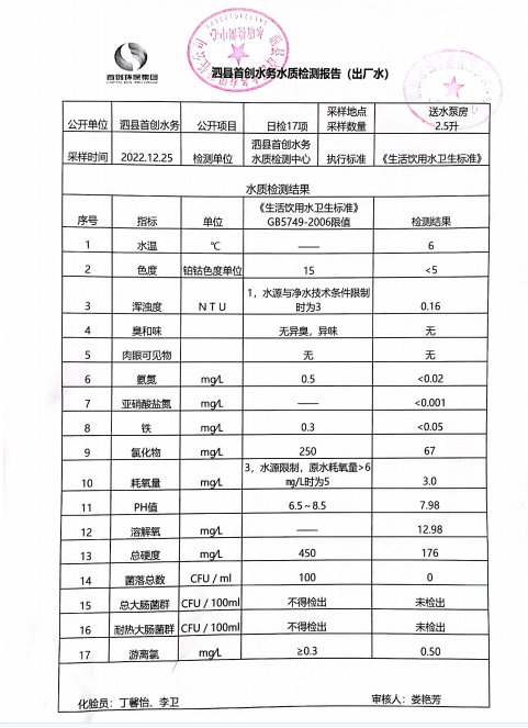 2022年12月25日出厂水水质
