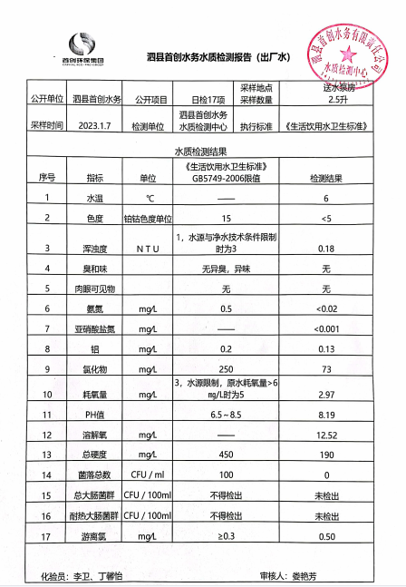 2023年1月7日出厂水水质