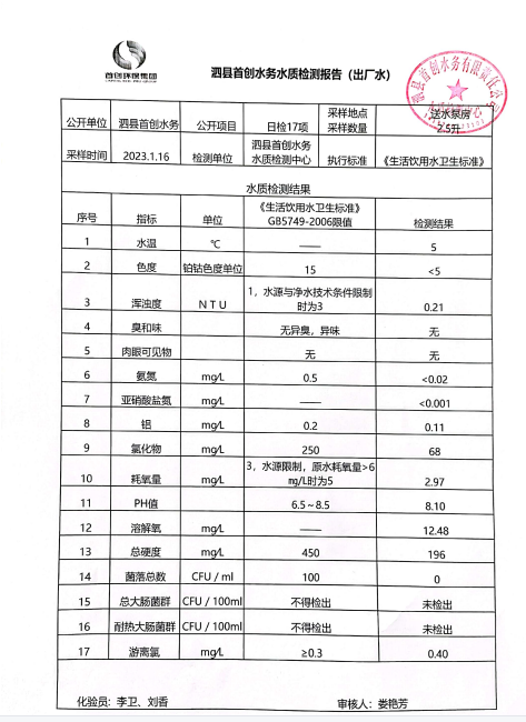 2023年1月16日出厂水水质