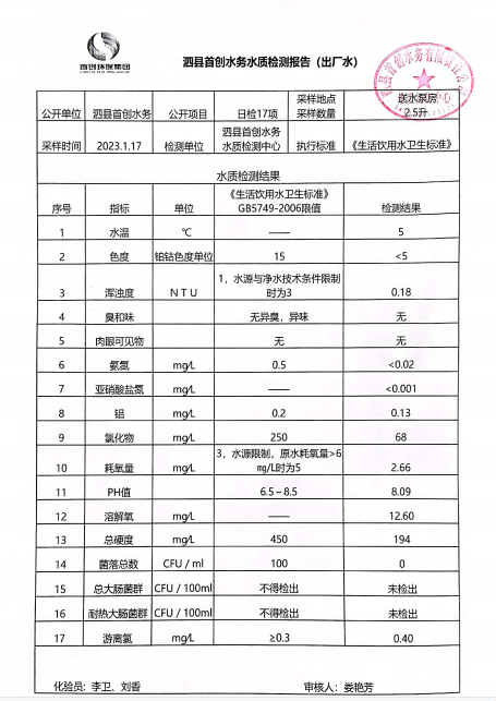 2023年1月17日出厂水水质