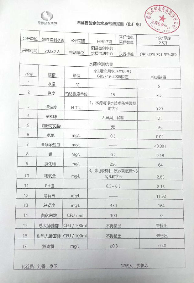 2023年2月8日出厂水水质