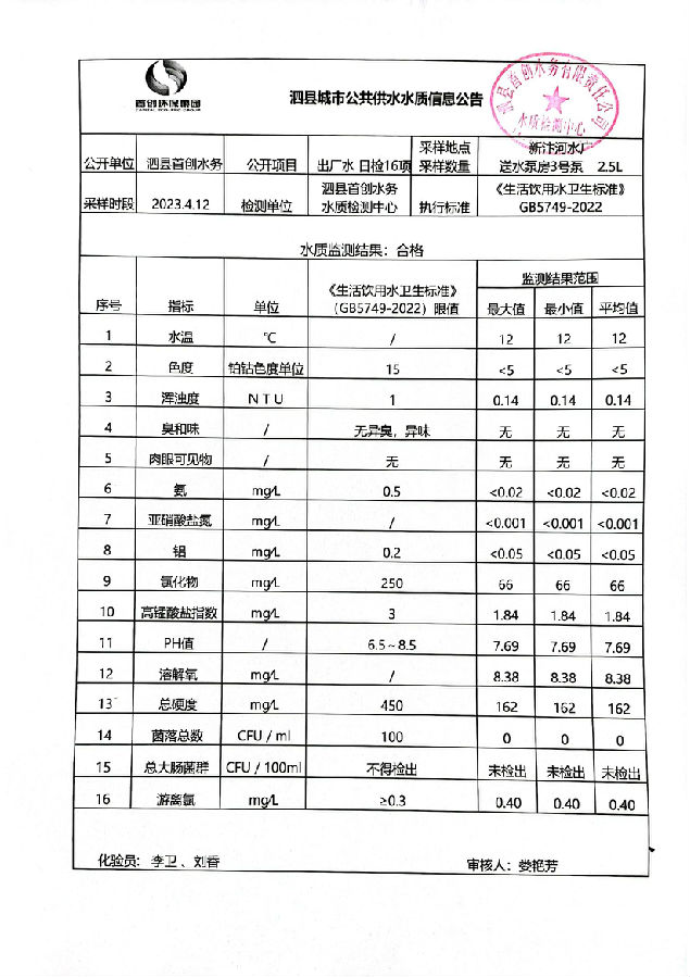 2023年4月12日出厂水水质