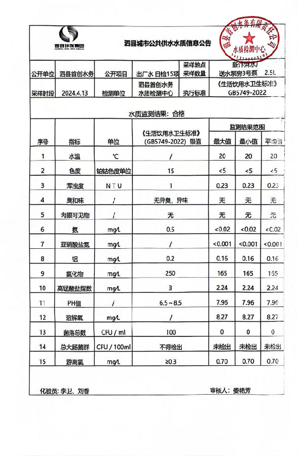 2024年4月13出厂水水质