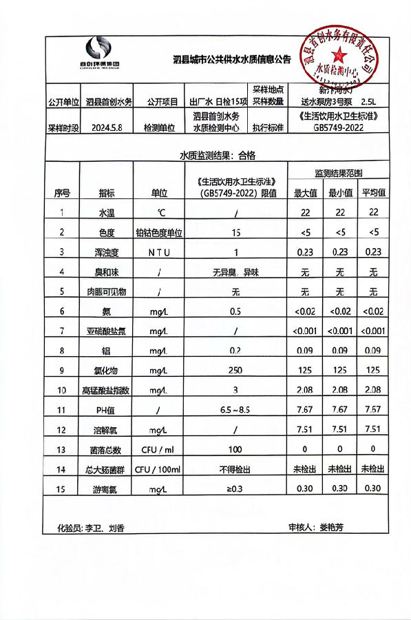 2024年5月8出厂水水质