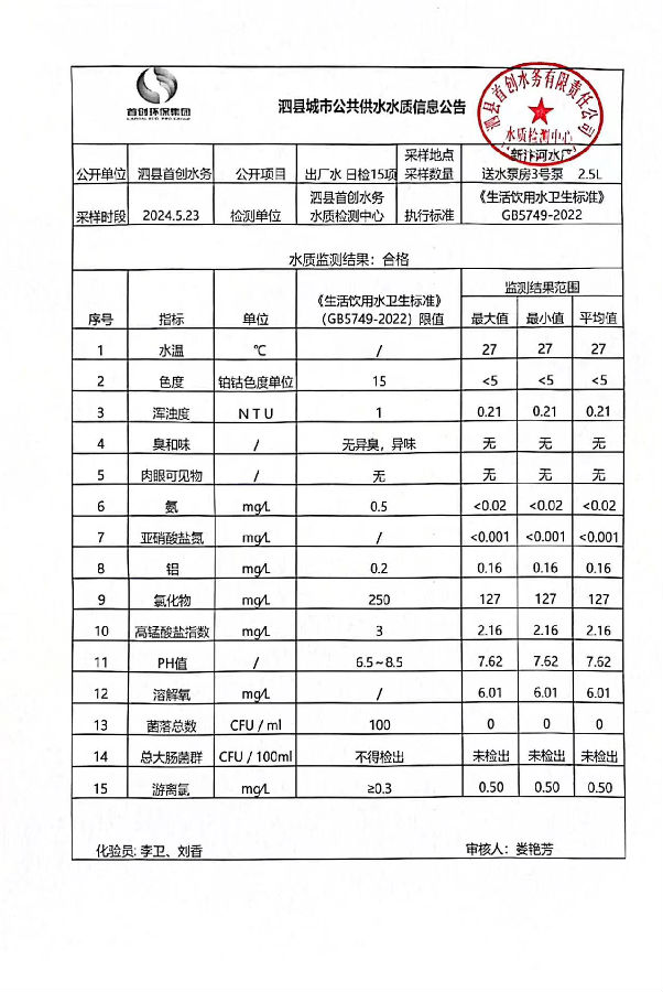 2024年5月23出厂水水质