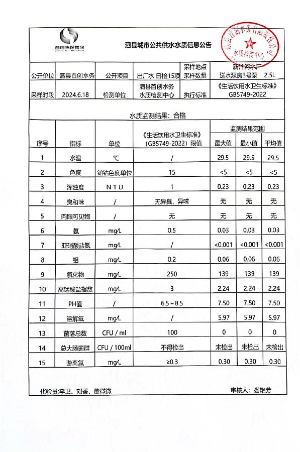 2024年6月18出厂水水质
