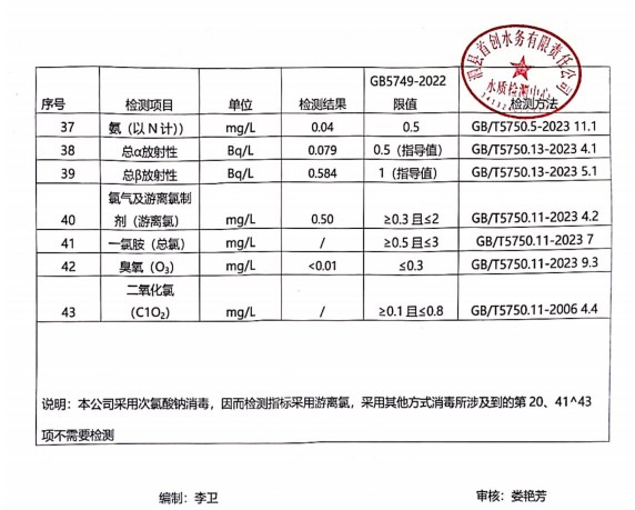 出厂水水质(月检43项)