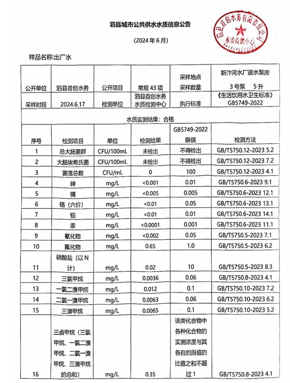 2024年6月出厂水水质(43项)