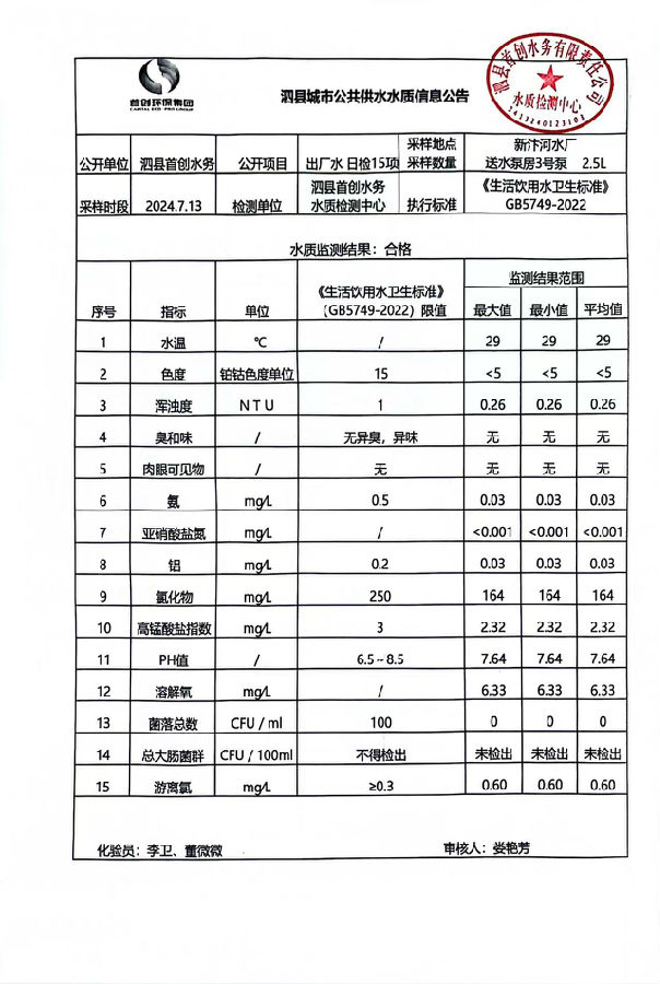 2024年7月13出厂水水质