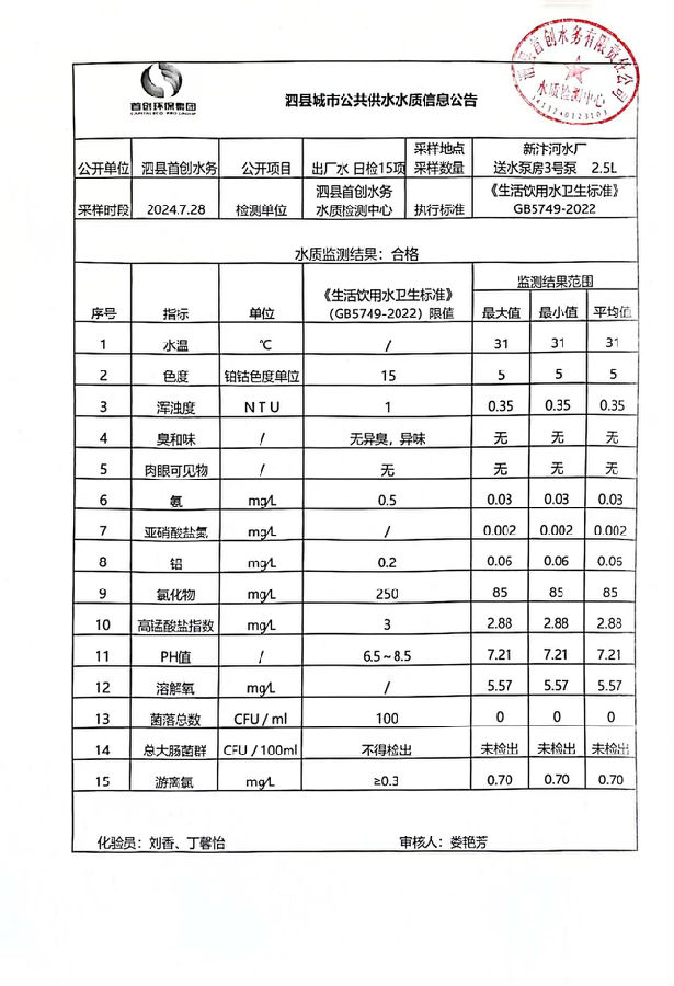 2024年7月28出厂水水质