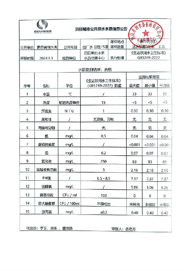 2024年8月3出厂水水质