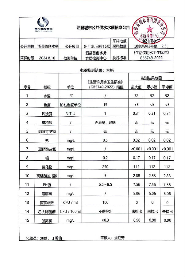 2024年8月16出厂水水质