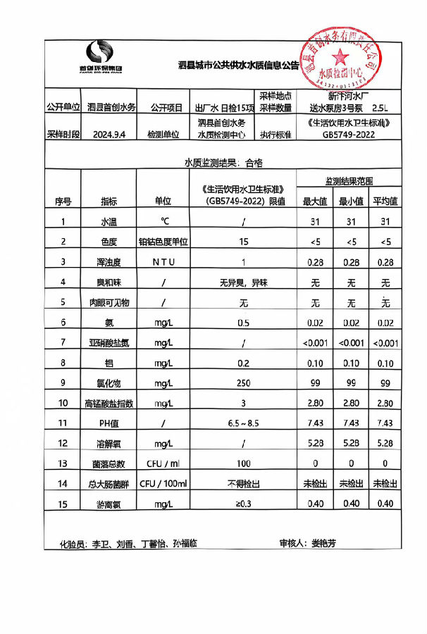 2024年9月4出厂水水质
