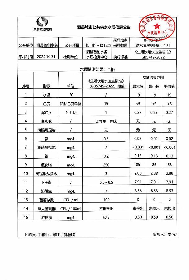 2024年10月31出厂水水质