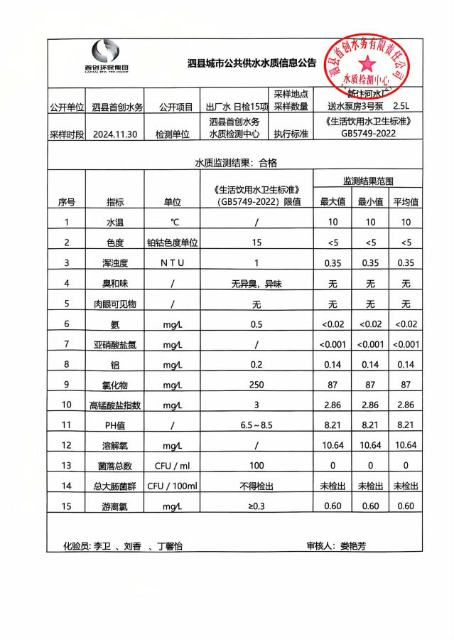 2024年11月30出厂水水质