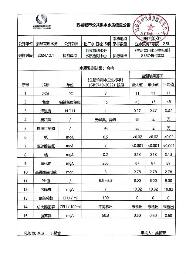 2024年12月1出厂水水质