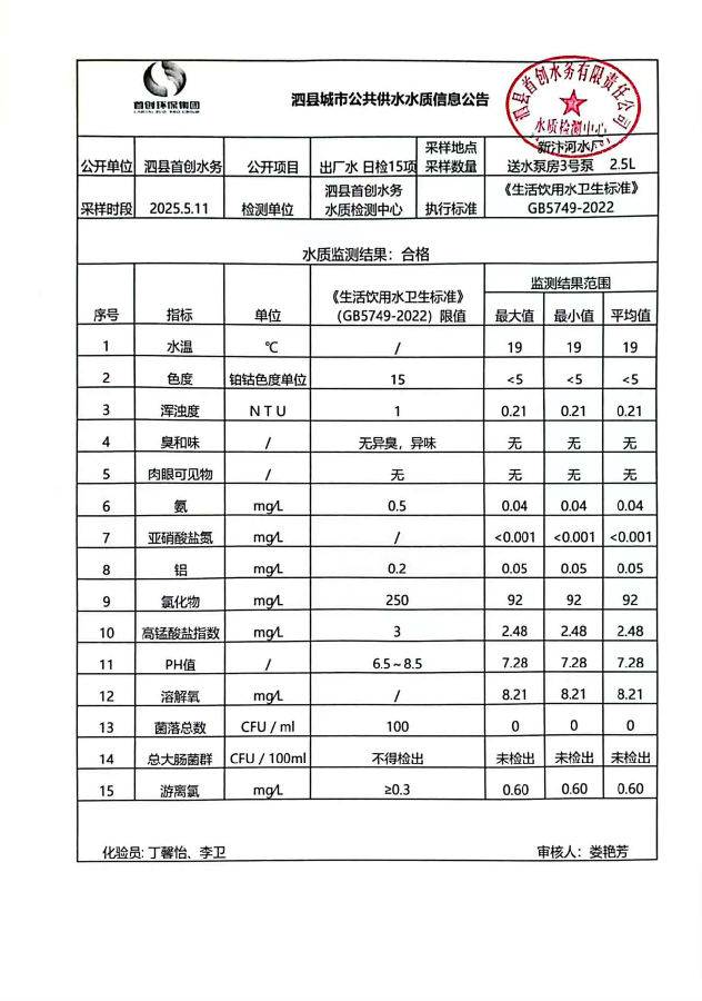2025年5月11日出厂水水质