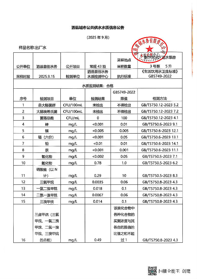 2025年9月出厂水水质(43项)