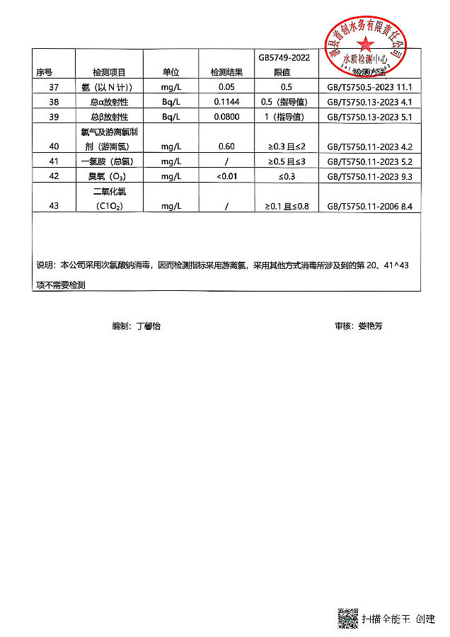 出厂水水质(月检43项)