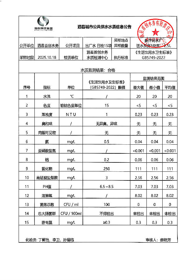 2025年10月18日出厂水水质