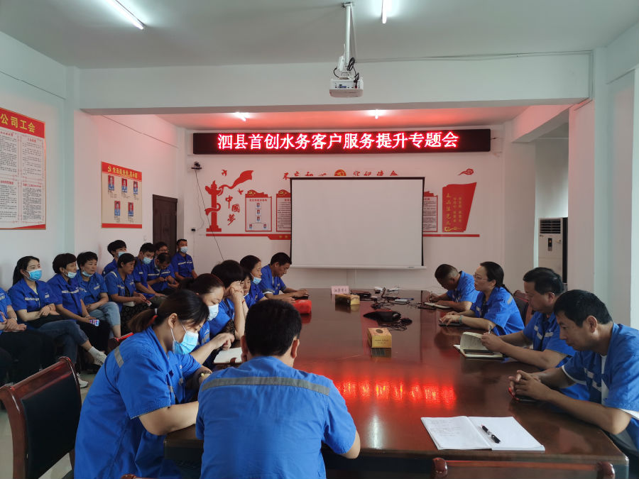 8月26日上午,泗县首创水务有限责任公司(以下简称“泗县首创”)召开客户服务提升专题会议,分析供水形势,研究供水服务提升措施,会议由泗县首创总经理周琪晨主持。