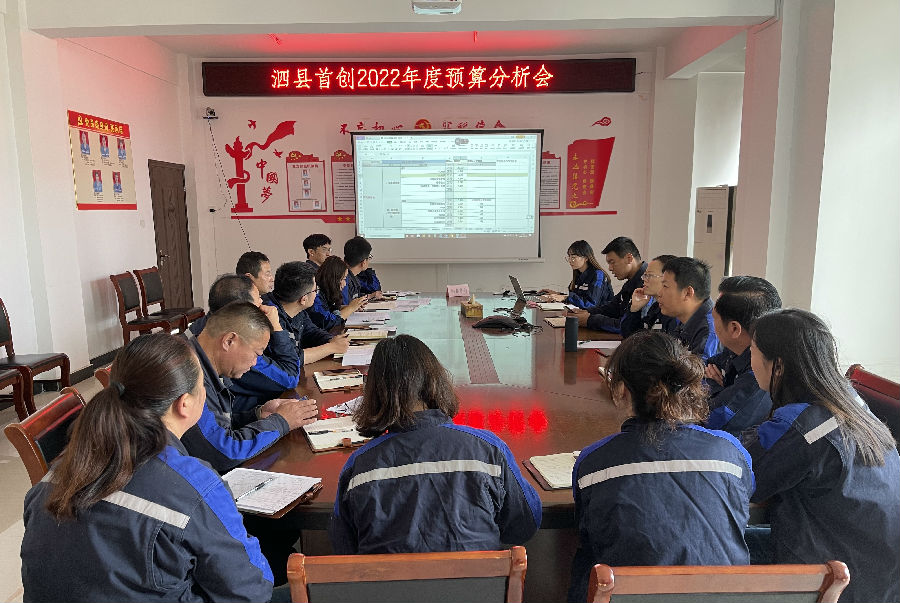 10月15日,泗县首创召开2022年度预算分析会,泗县首创领导班子、各部门负责人参加会议,泗县首创财务总监曹明祖主持会议。