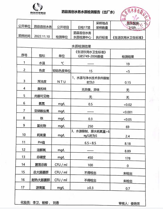 2022年11月10日出厂水水质