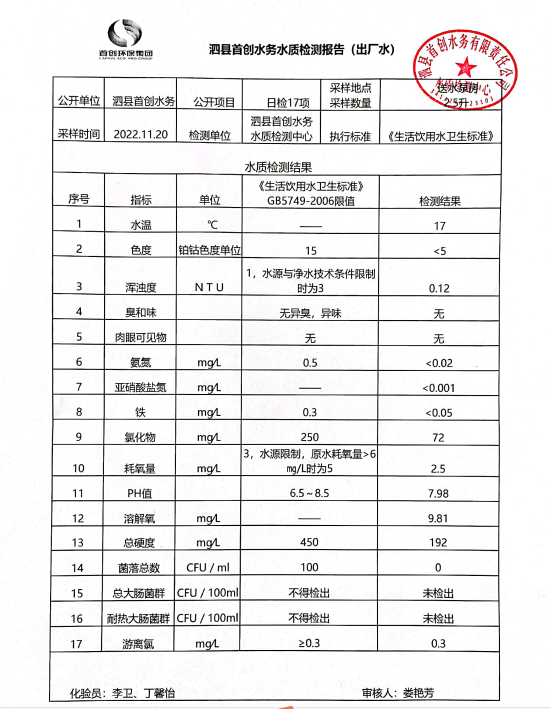 2022年11月20日出厂水水质