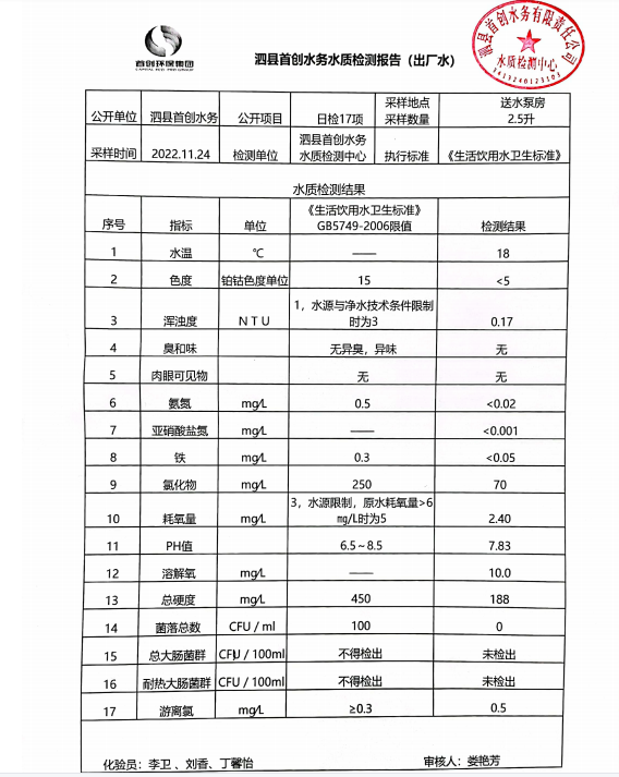 2022年11月24日出厂水水质