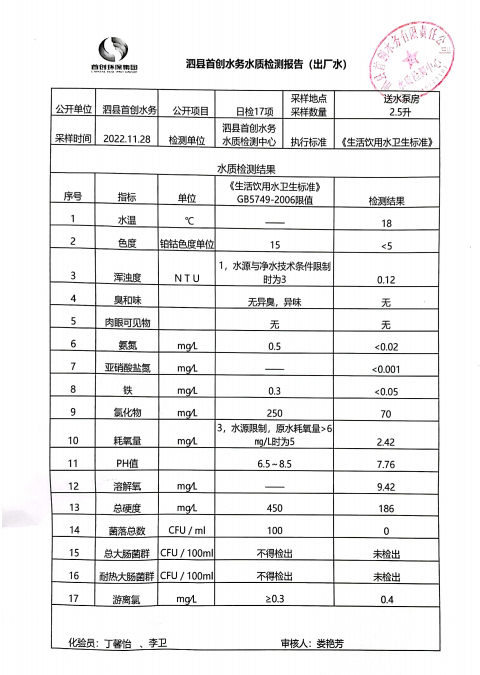 2022年11月28日出厂水水质